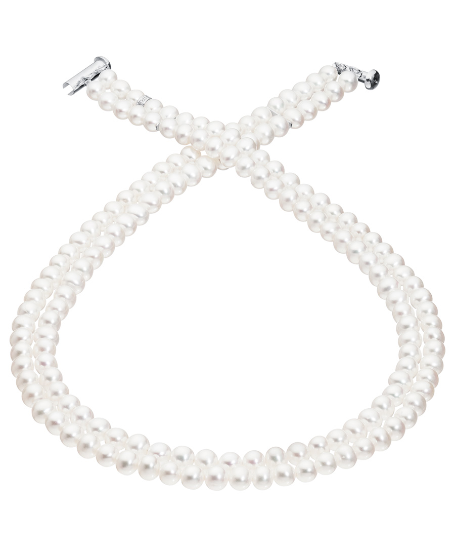 Kaunis 2-rivinen helminauha valkeista makeanveden viljellyistä helmistä. Helmen koko n. 6mm.