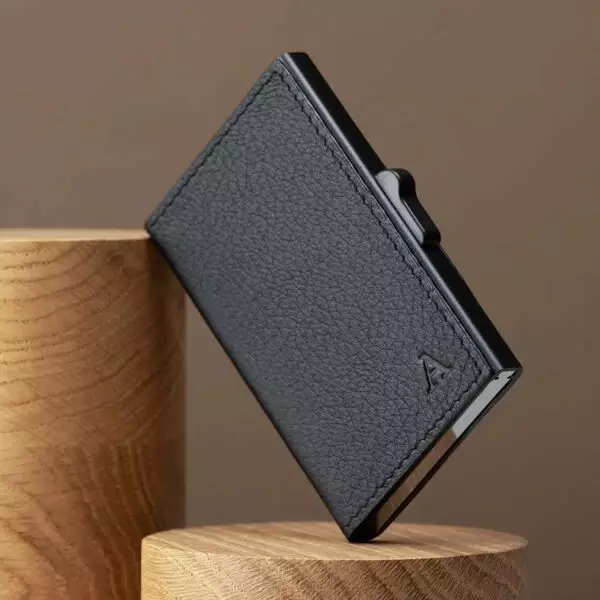 Aarnin tyylikäs alumiininen korttikotelo joka on päällystetty suomalaisella hirvennahalla.