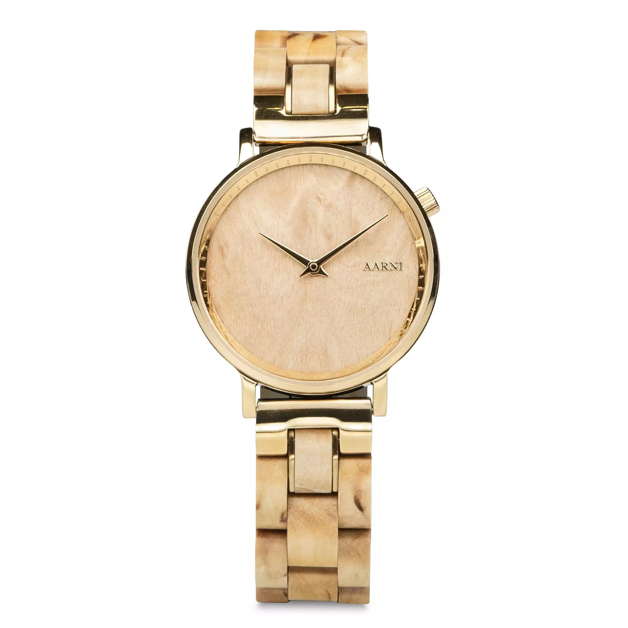Kaikki Aarni kellot on suunniteltu roiskevesitiiviiksi, mutta puun luonnollisista ominaisuuksista johtuen tulee välttää veteen upottamista. Huomioithan, että puun kuviointi ja sävy ovat yksilöllisiä, mikä tekee jokaisesta rannekellosta uniikin.