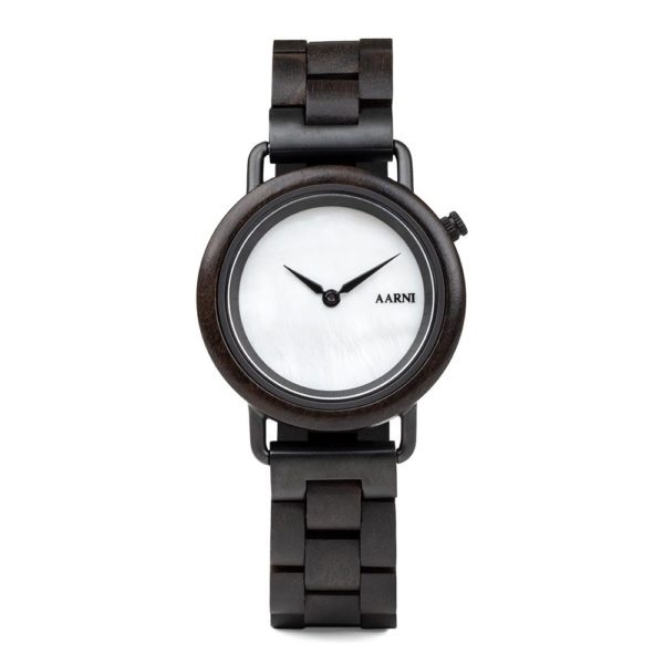 Aarnin tyylikäs tumma uutuus Saga Eeben tummasta eebenpuusta, vaalealla kellotaululla