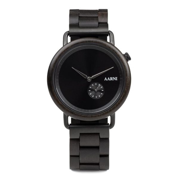 Kaikki Aarni kellot on suunniteltu roiskevesitiiviiksi, mutta puun luonnollisista ominaisuuksista johtuen tulee välttää veteen upottamista. Huomioithan, että puun kuviointi ja sävy ovat yksilöllisiä, mikä tekee jokaisesta rannekellosta uniikin.