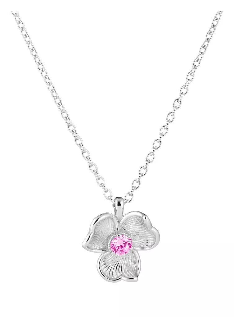 Anna riipuksen kaunis kukka kuvio on herkän ajaton, pinkki kivi loistaa antaen korulle vivahteikkuutta ja näyttävyyttä. Ketjun pituus on säädettävissä 45/50cm.