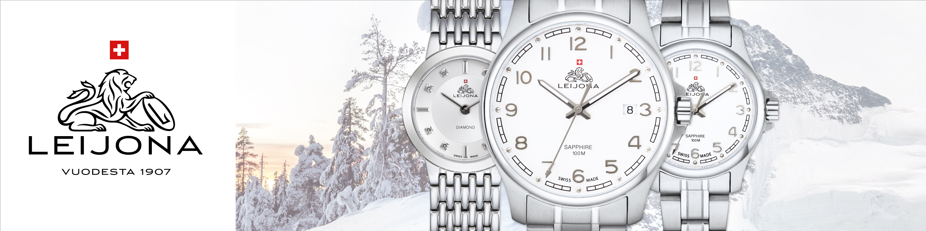 LEIJONA SWISSLeijona Swiss naisten rannekello 5172-4597LEIJONA SWISS - teräksinen naisten rannekello valkealla kellotaululla ja safiirilasilla. (0)299,00 € Heti omasta varastostaTuotteet lähetetään 1-4 arkipäivässä