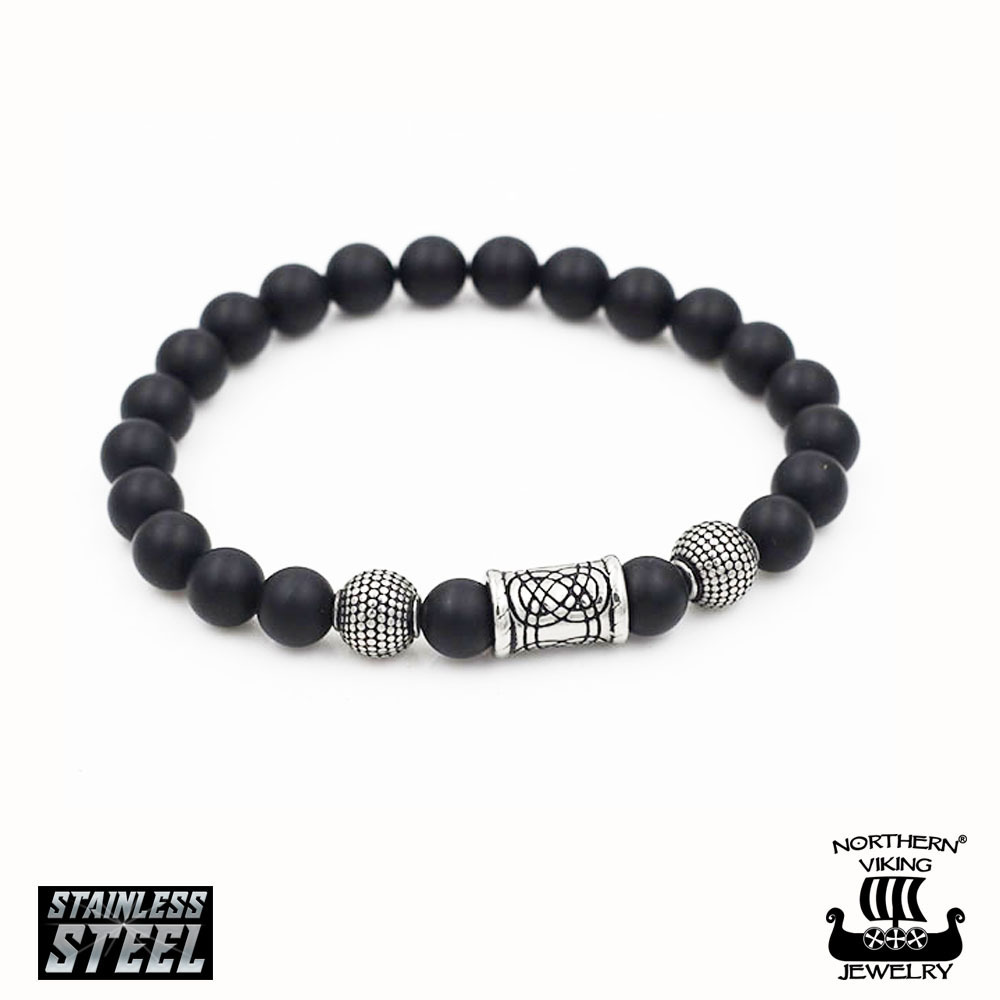 Northern Viking Jewelry "Blackstone Knotwork" kivihelmi rannekoru.