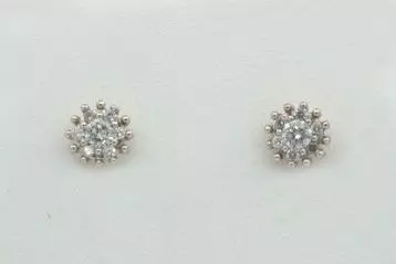 Keltakultaiset korvanapit joissa kimaltelee 12 kirkasta timanttia kauniisti istutettuna rykelmään.