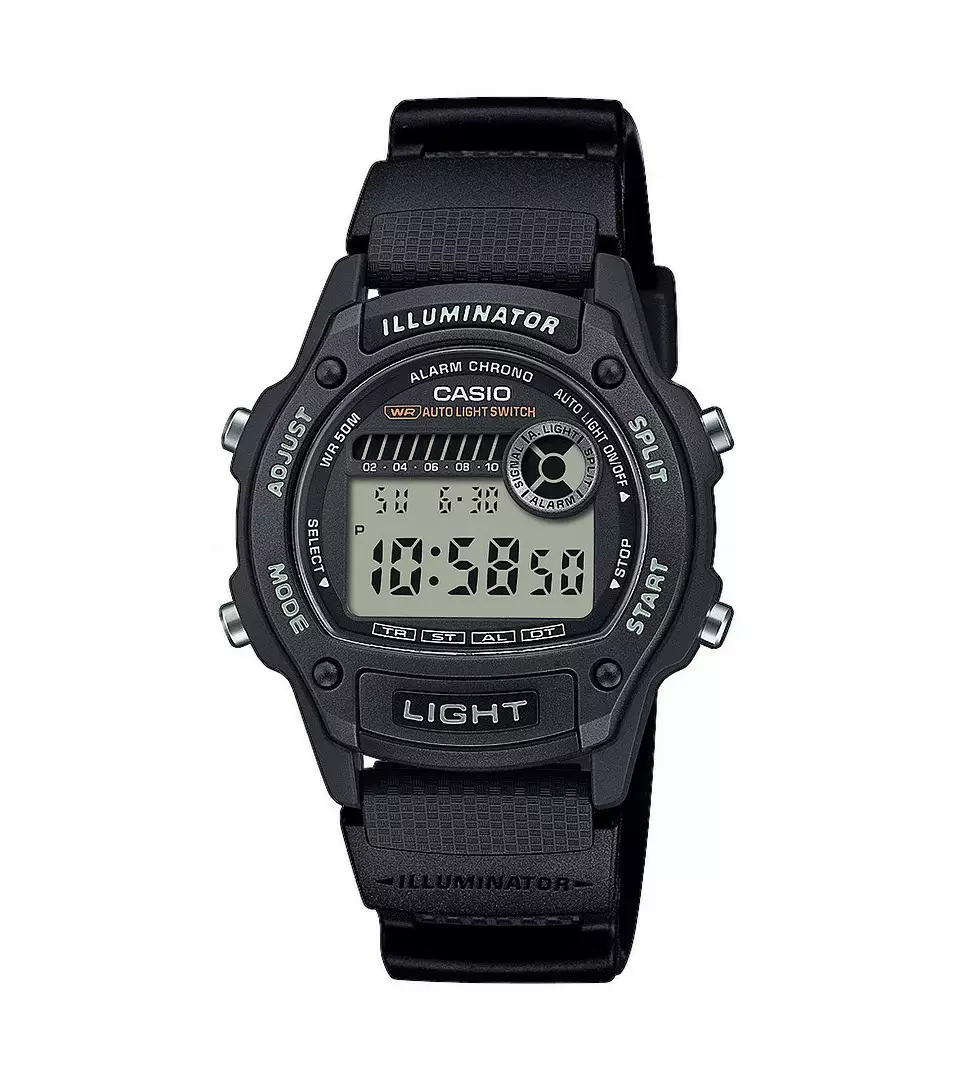 CASIO W-220H-1AVEF Vesitiiviys: 5atm Koko: kellotaulun halkaisija 36,6mm, rungon korkeus 10,9mm, paino 27g Materiaali: hartsirunko,BIO pohjainen hartsiranneke, musta LED valo Ajanotto/sekkari Hälytys... Lue lisää