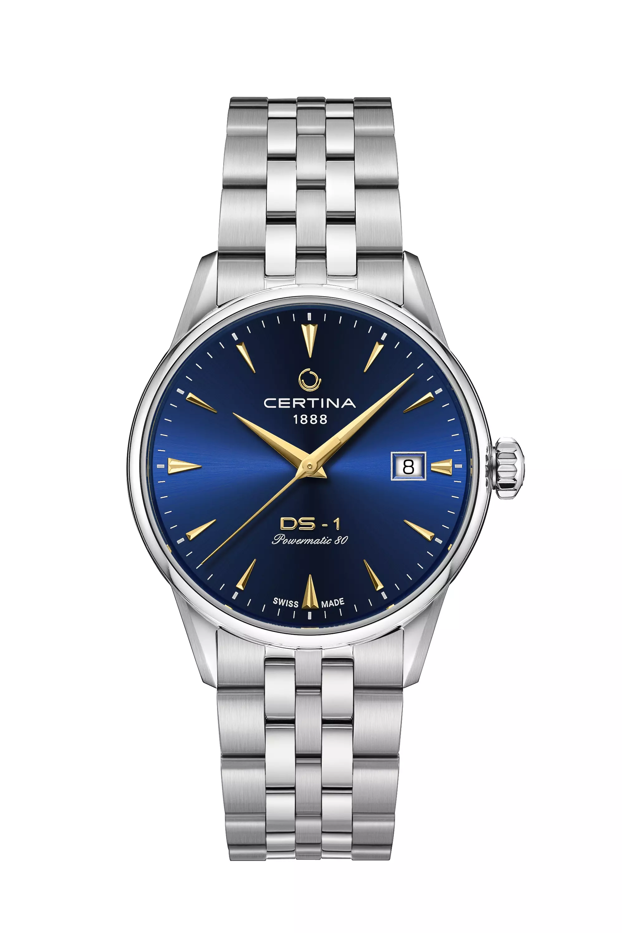 Certina DS-1 - upea miesten automaattikello powermatic koneisetolla, ruostumaton teräs kuori&ranne, tummansininen kellotaulu.