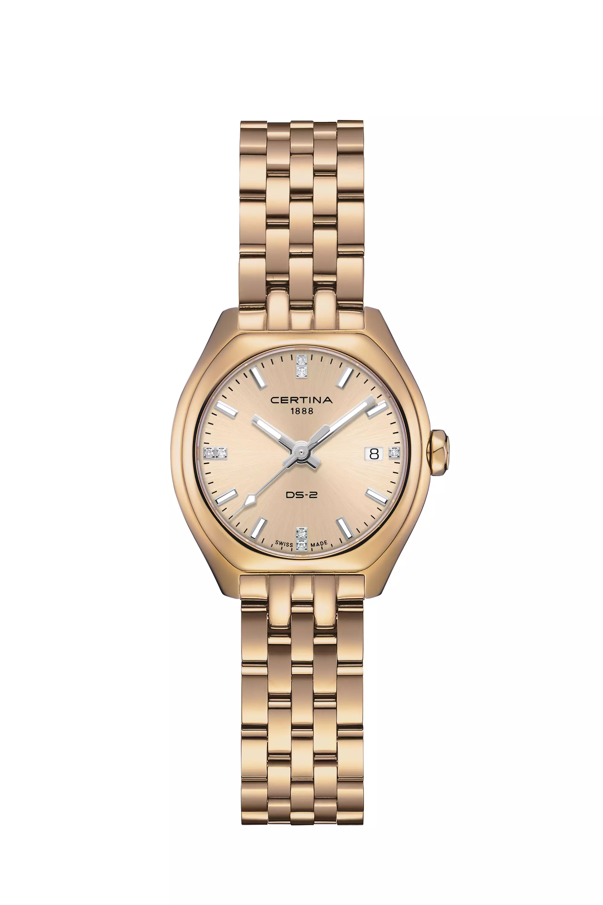 Certina DS-2 kaunis ruusukullansävyinen naisten kello jonka kellotaulussa sädehtii timantit!