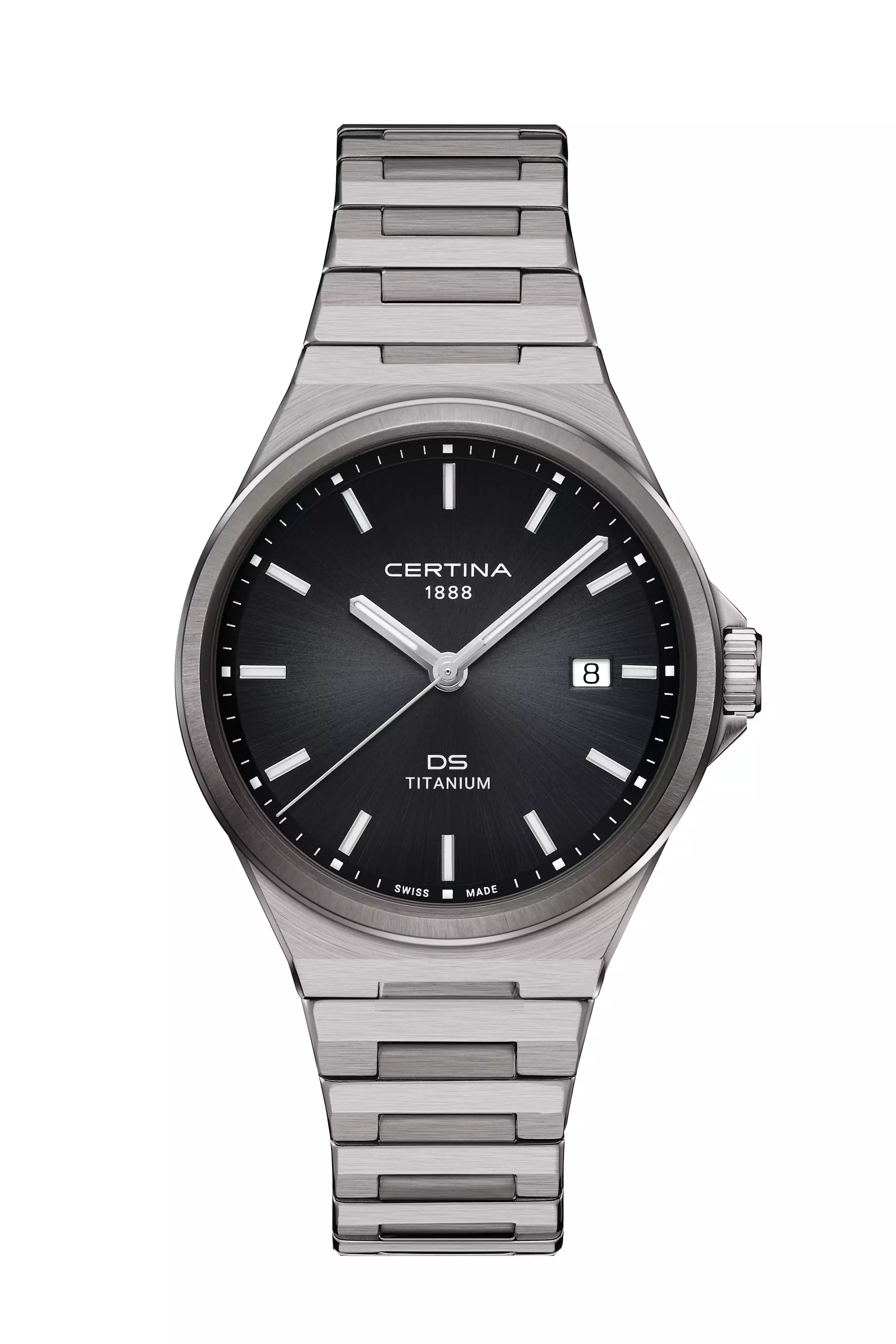 Certina DS-7 tyylikäs ja luja miesten titaanikuorinen rannekello. Titaanin vahvuus & keveys yhdistettynä Certinalle ominaisiin lujiin ominaisuuksiin (naarmuuntumaton lasi ja vesitiiviys) tekevät tästä kellosta erinomaisen käyttökellon jokaiseen päivään!