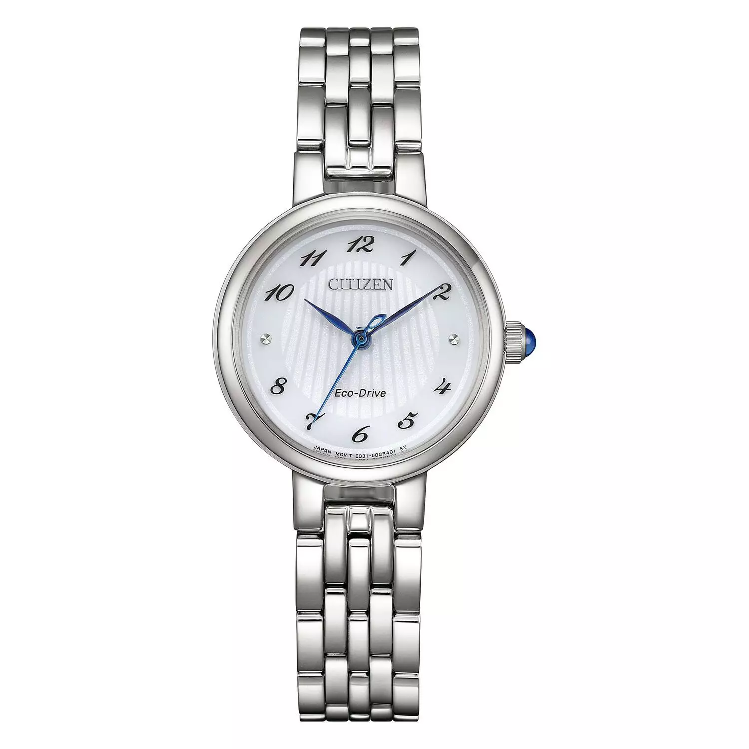 Citizen Eco-Drive - kaunis teräksinen naisten rannekello jossa valkeassa kellotaulussa hieman kimallusta!