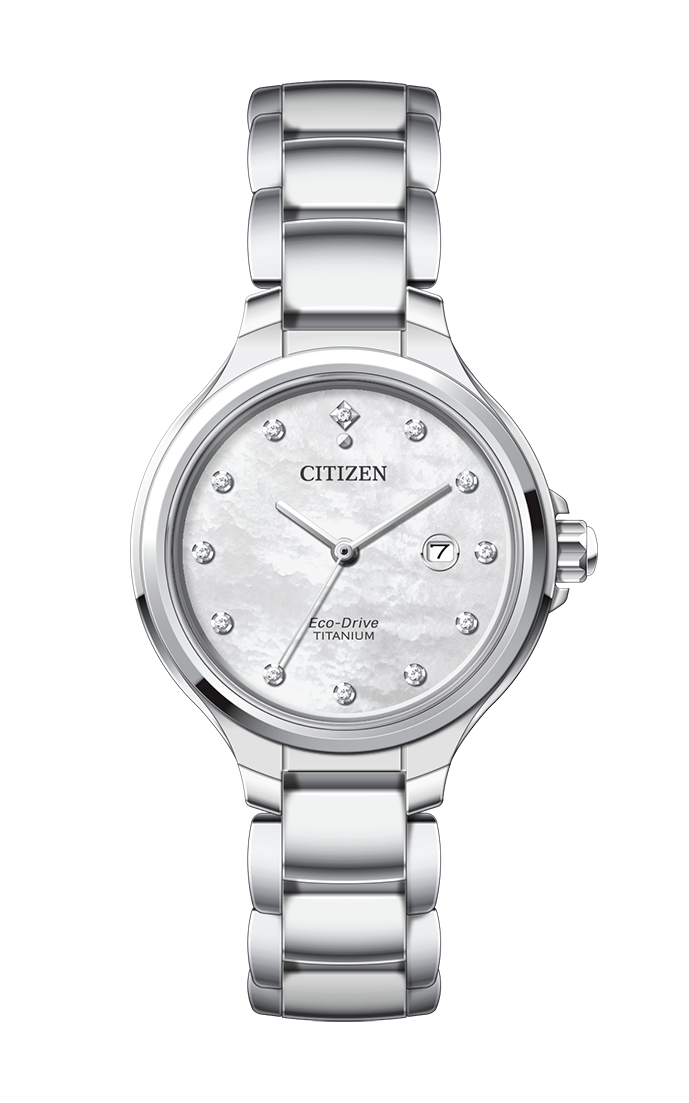 CITIZEN Eco-Drive naisten rannekello tyylikkäällä titanium rannekkeella ja helmiäiskellotaululla