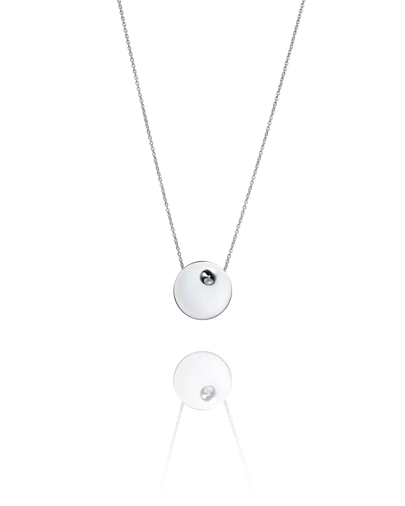 Efva Attling Bumper - pelkistetty, tyylikäs, pyöreä lautasen muotoinen laatta riipus jossa on "lommo", ketjussa säätövaraa 40-42-45cm.