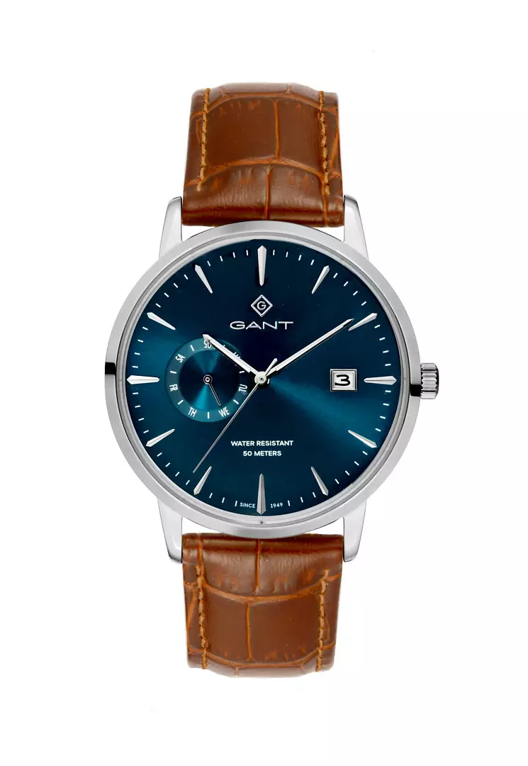 Gant East Hill - tyylikäs miesten rannekello jossa upea sininen kellotaulu ja ruskea nahkaranneke!