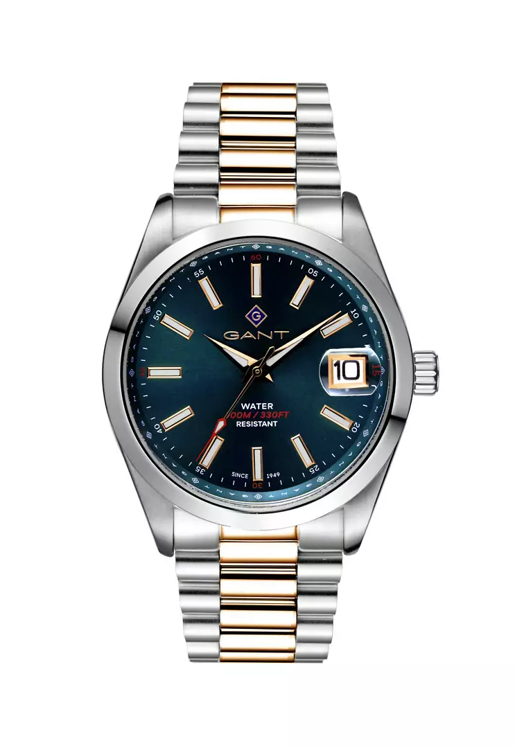 Gant Eastham - tyylikäs, vesitiivis miesten kello 2-värisellä teräs rannekkeella ja sinisellä kellotaululla.