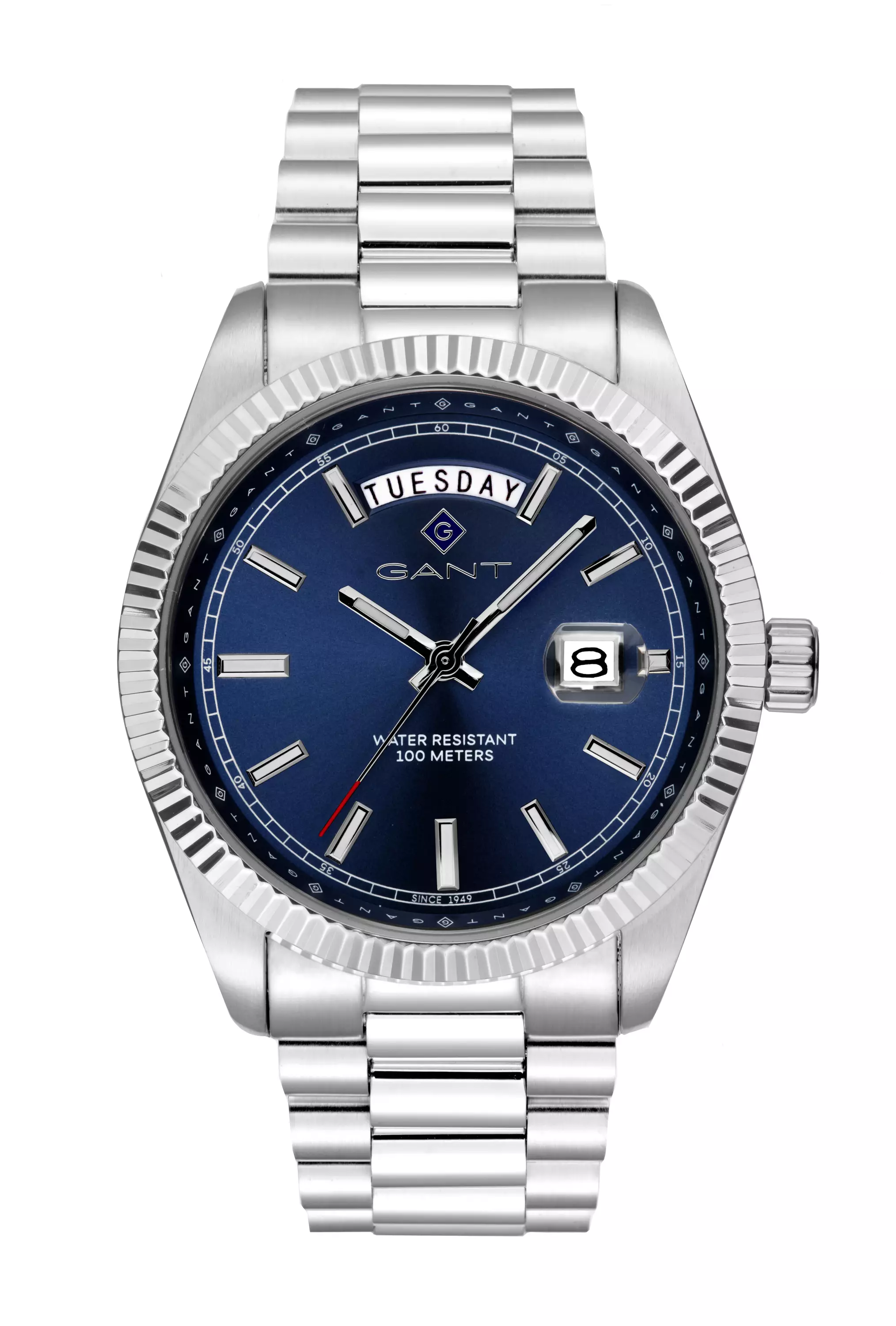 Gant Fairfax miesten rannekello metallirannekkeella ja sinisellä kellotaululla.