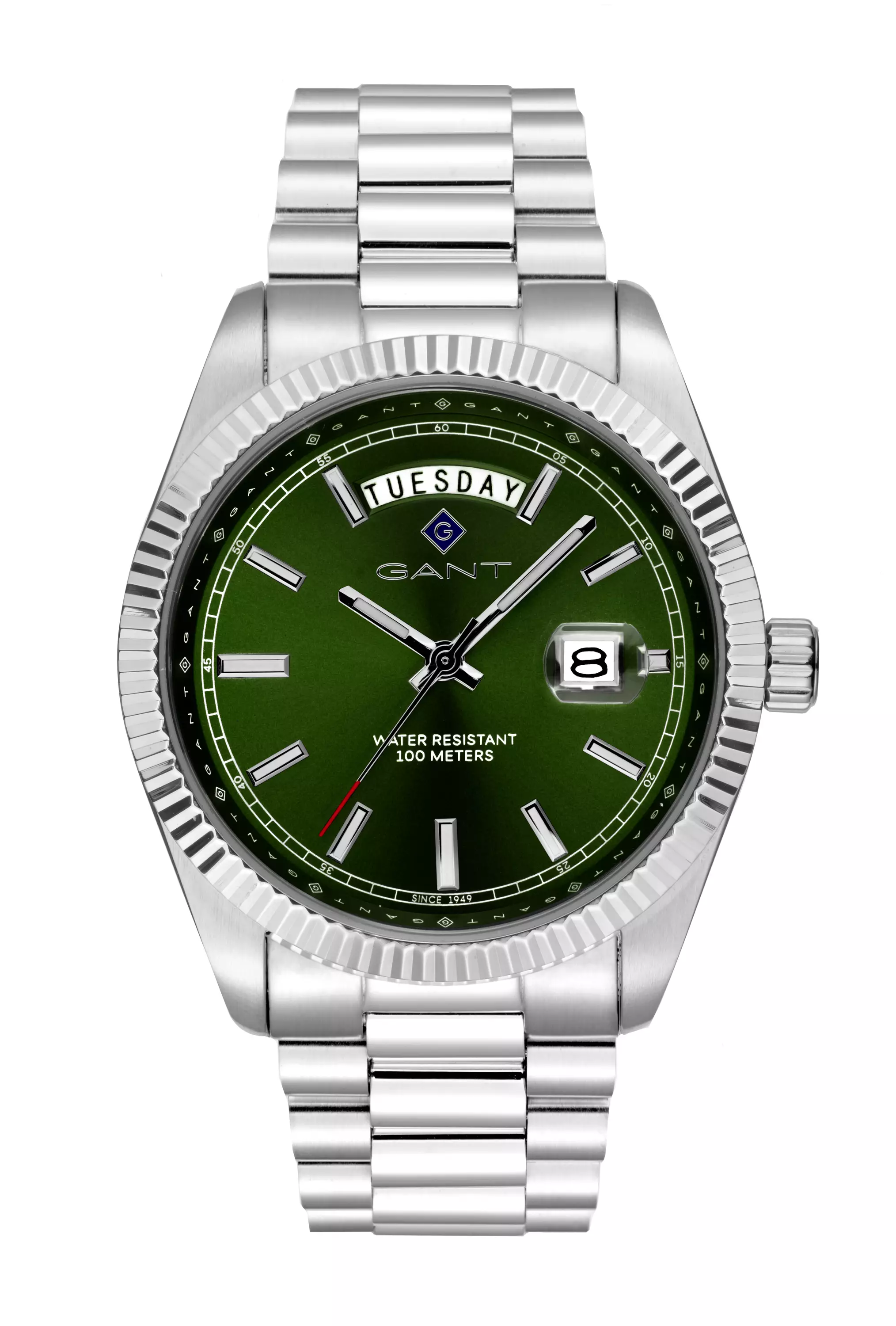 Gant Fairfax miesten rannekello metallirannekkeella ja vihreällä kellotaululla.