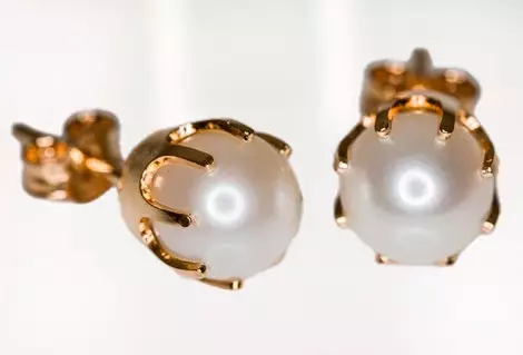 Klassikko korvakorut - valkea 7mm helmi korvakoru kultaisella kruunuistutuksella.