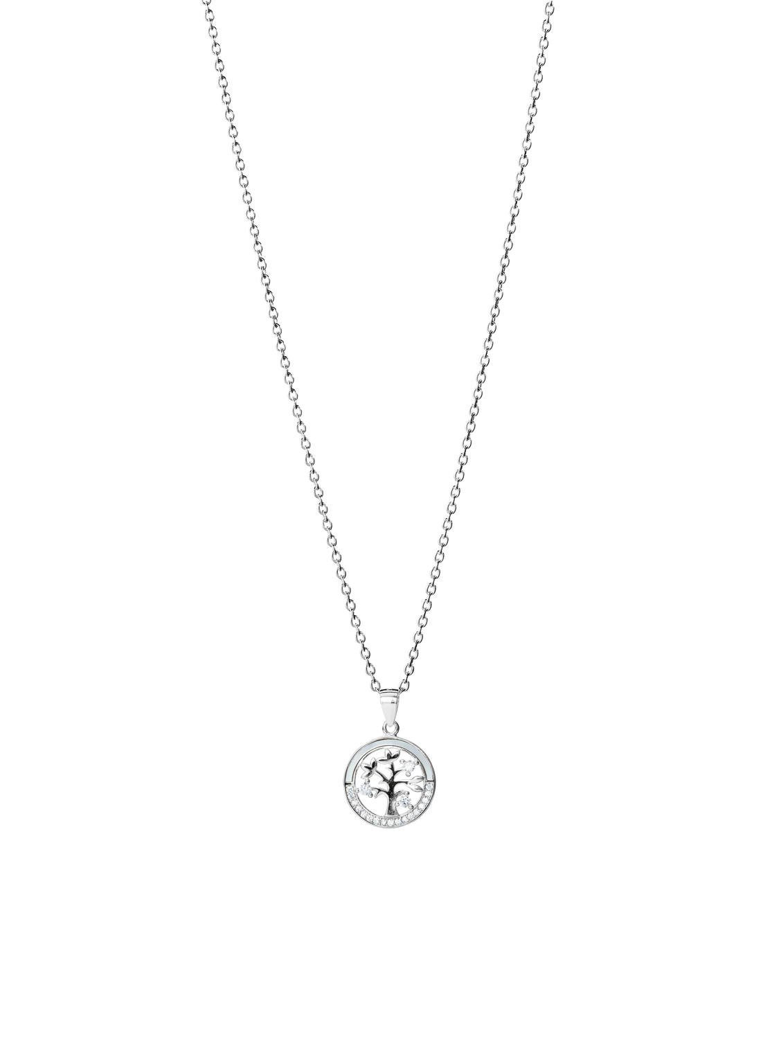 Sorean hopeinen Elämän puu kaulakorua koristaa zirkon kivet, ketjun pituus 42/45 cm
