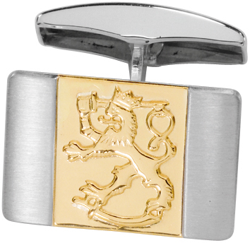 SAURUM OY hopeinen solmiopidin jossa kultapalassa Suomileijona