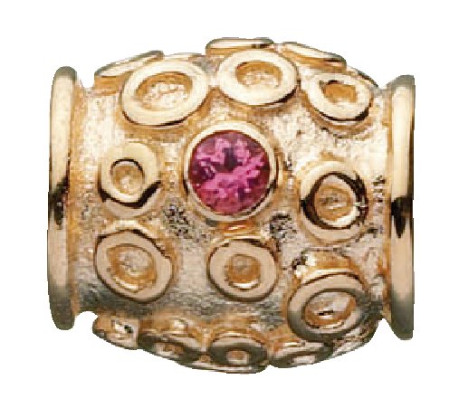 Kalevalan kultainen Lapsi-hela 1629/1, helassa punainen turmaliini.