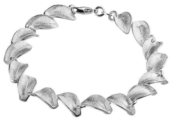 Kalevalan kaunis hopeinen Lumikukka rannekorussa pienet lehdykät kiertävät ympäri rannetta, eri pituuksia.