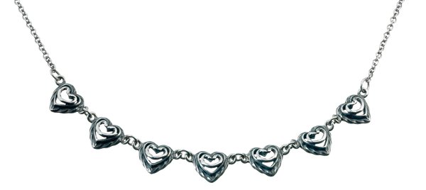 Kalevalan hopeinen Talonsydän kaulakoru 6500. Seitsemän pientä syndäntä koristavat ketjun etuosaa ja antavat juhlavan ilmeen. Keksit varmaan merkityksen jokaiselle sydämelle.