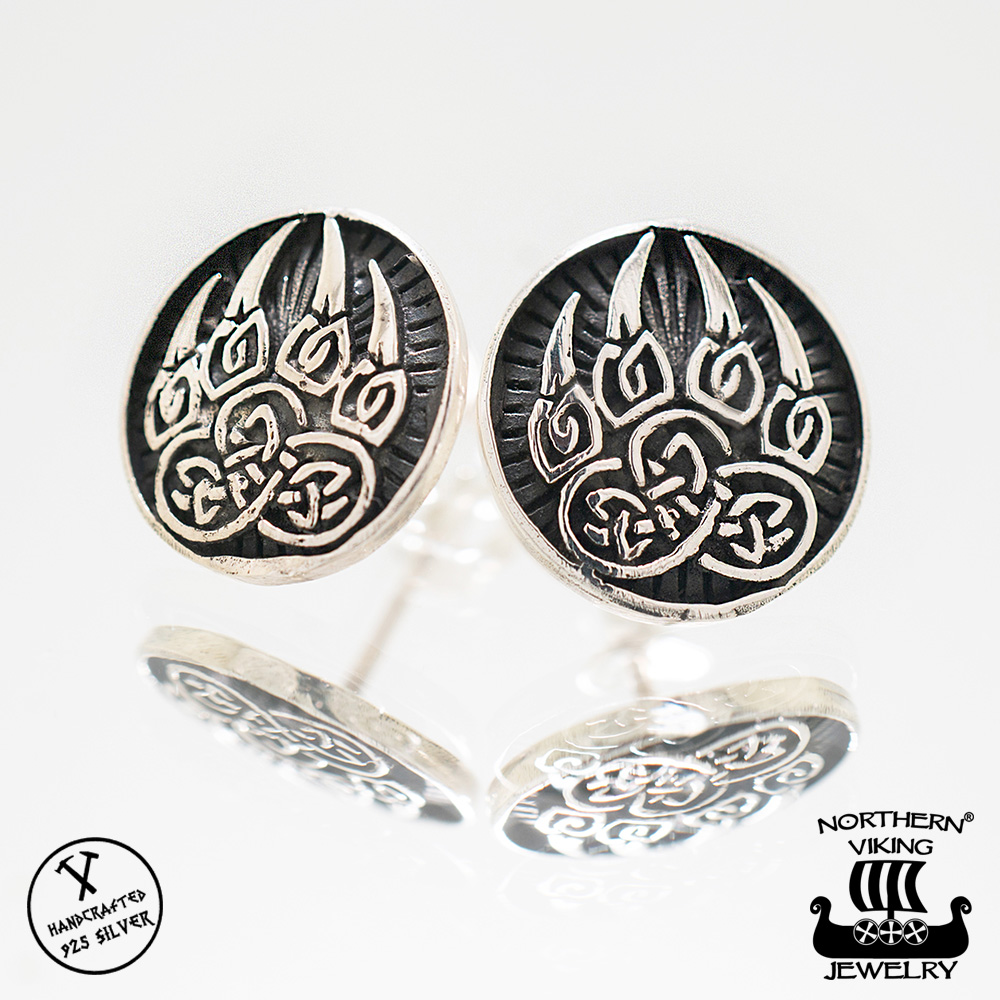 Northern Viking Jewelry® "925-Hopea Nappikorvakorut Karhun Käpälä"