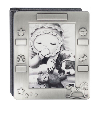 Tinattu valokuva albumi 10x15cm kokoisille kuville, albumin kannessa paikat kaiverruksille.