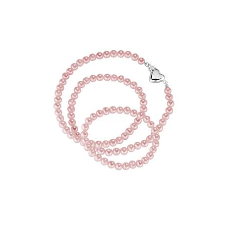 Ihastuttavat pienokaisen ensimmäiset helmet. Aidot makeanveden helmet hohtavat syvää pinkin sävyä. Hopeinen sydänlukko toimii kauniina koristeena.