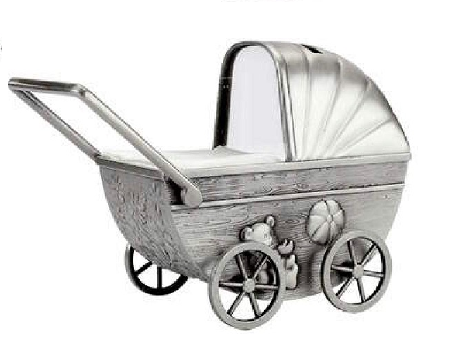 Sievä tinattu lastenvaunu pankki, pankkiin voidaan tehdä kaiverrus.