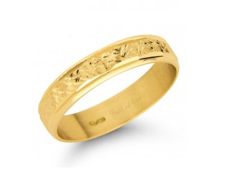 Beat Of Love sarjan keltakultainen kuvioitu kihlasormus 14 ka