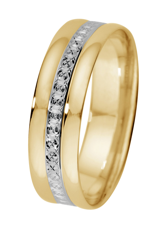 Näyttävä sormus jossa keskellä timanttihiottu valkokulta panta. Upea sormus muistosormukseksi tai vaikkapa kihla-ja vihkisormukseksi. Timanttihiottu pinta säihkyy kuin timantit, ilman timantteja!