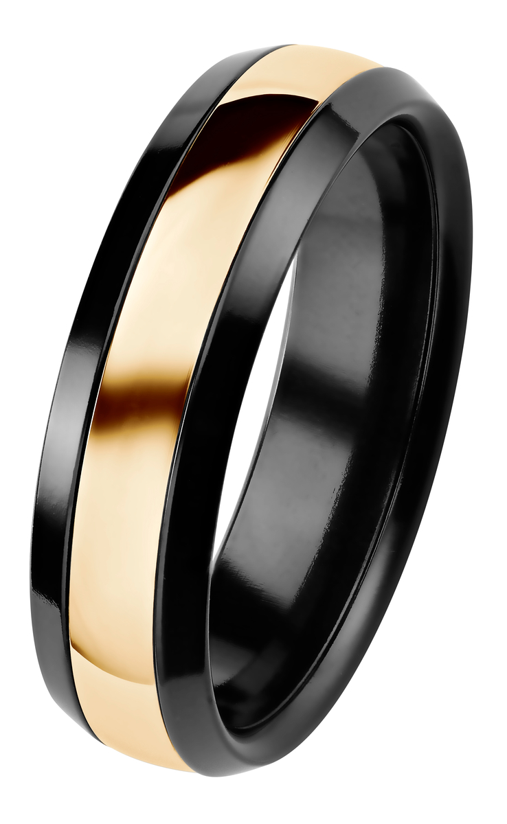Kohinoor Duetto 006-092 tyylikäs sormus jossa yhdistetty mustaa zirkoniumia sekä keltakultaa.