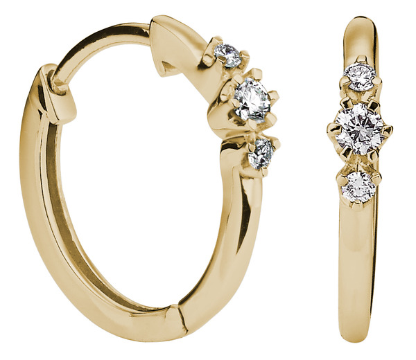 Kohinoor Helene - sirot keltakultaiset rengaskorvakorut joissa yhteensä 0,14ct timantteja.