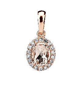 Kohinoor punakultainen riipus, 18timanttia + morganiitti.