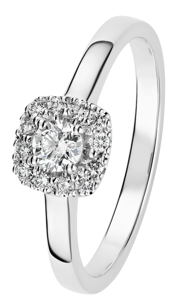 KIVET: keskellä cushion hiontainen timantti 0,18 ct, reunoilla 12x0,01 H VS