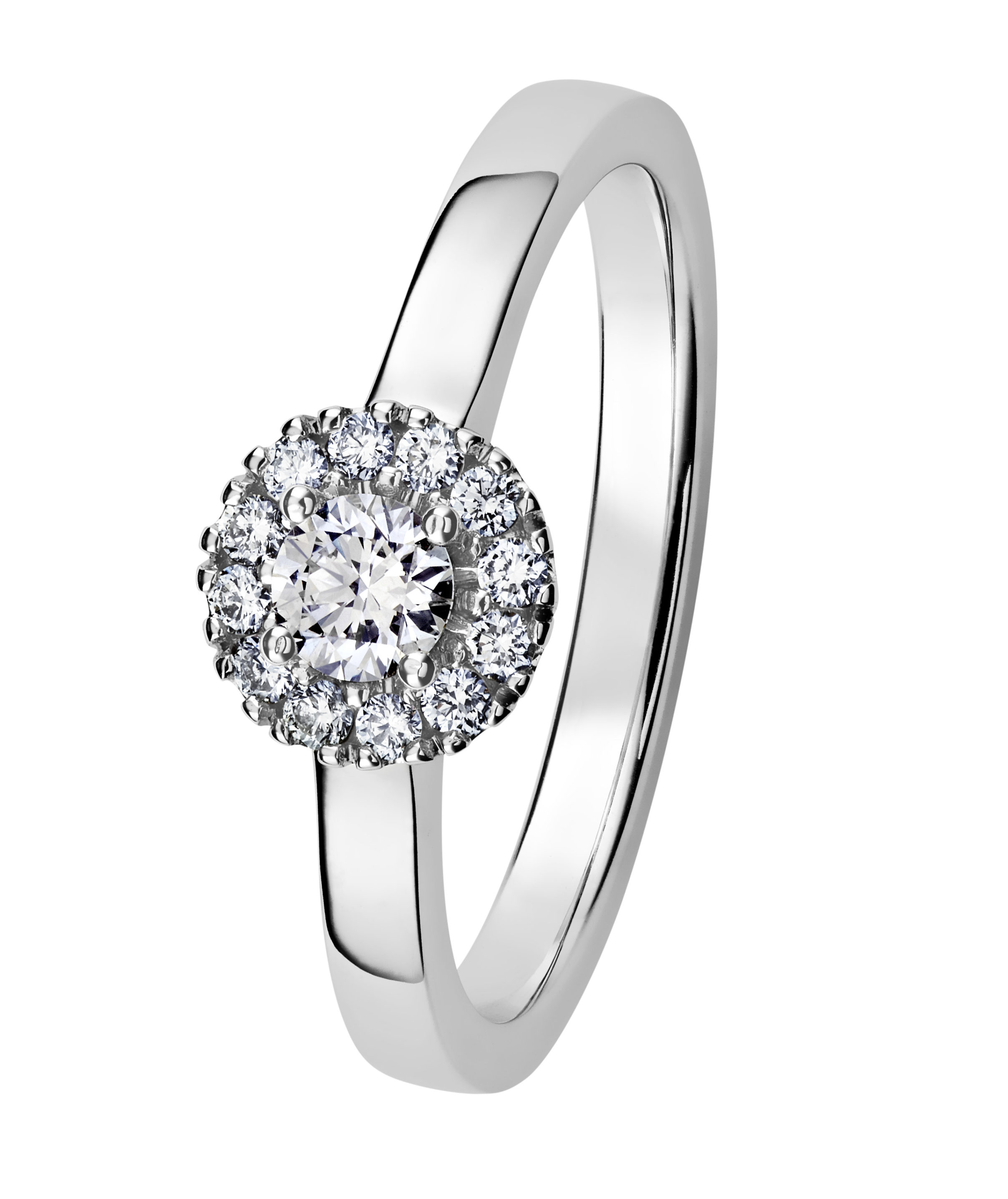 Siro sormus pyöreällä halo-koristeella, sopii hyvin yhteen esimerkiksi Valerie 033-265v-18 rivisormuksen kanssa.