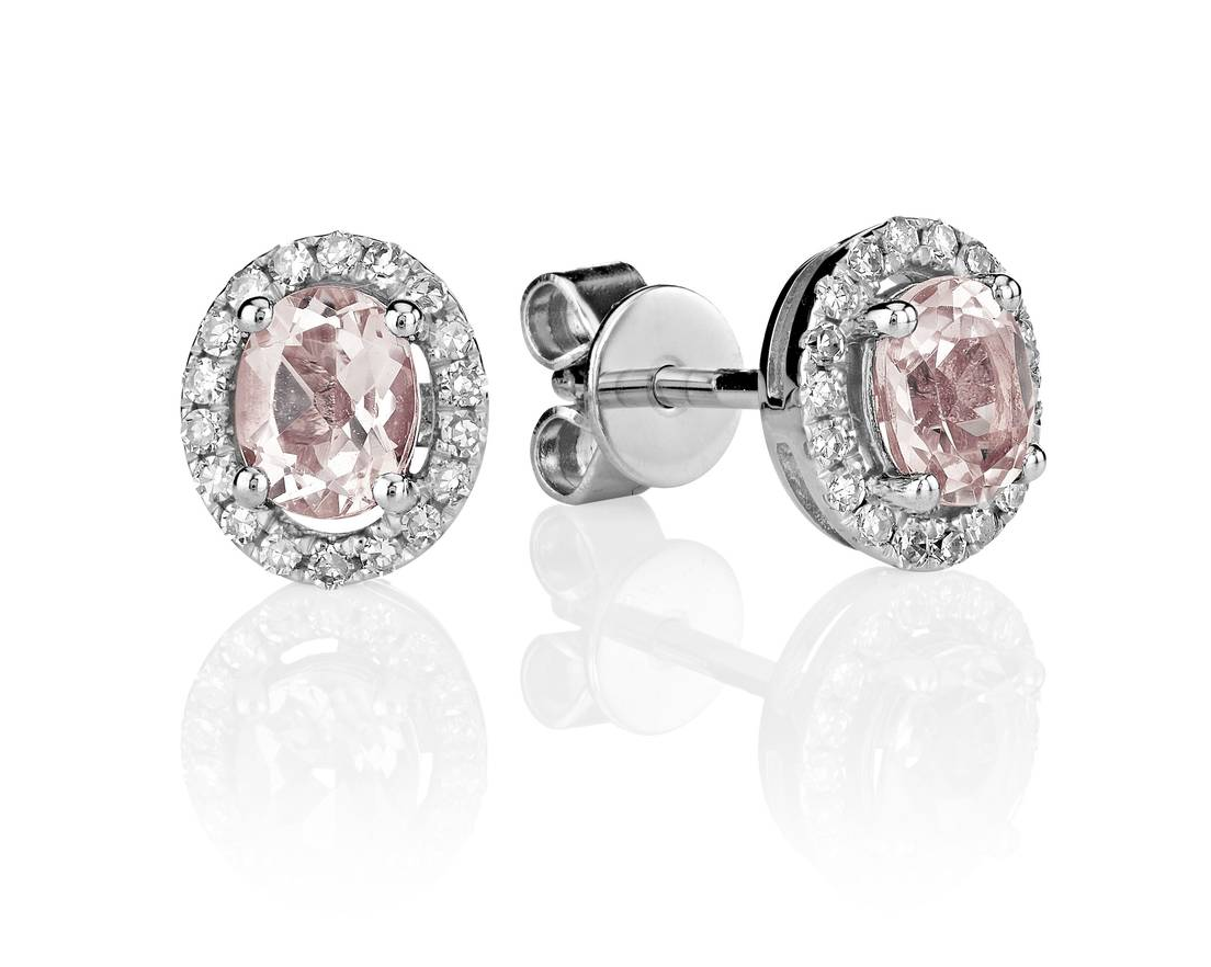 Kohinoor Loreley korvakorut 143-P5186V Materiaali: valkokulta, 14K Kivet: timantit yht. 0,15ct H/SI + morganiitit Ovaalin muotoinen korvakoru tappi kiinnityksellä.