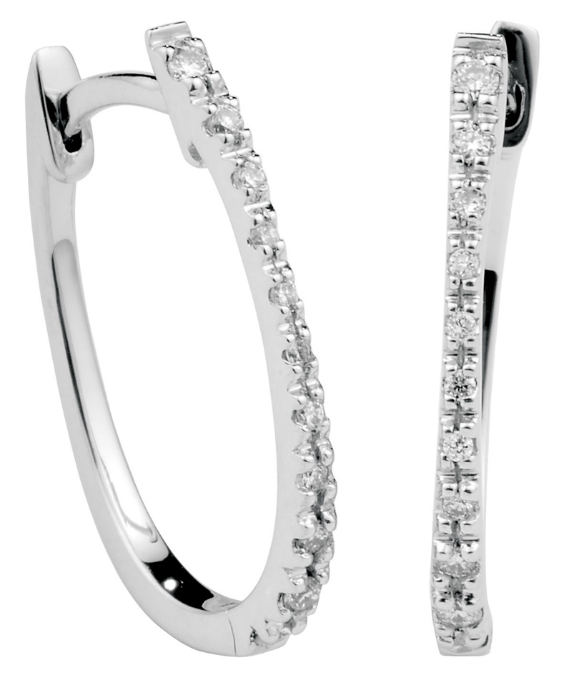 Kohinoor valkokultaiset timantti korvarenkaat yht. 0,12ct sarana kiinnityksellä.