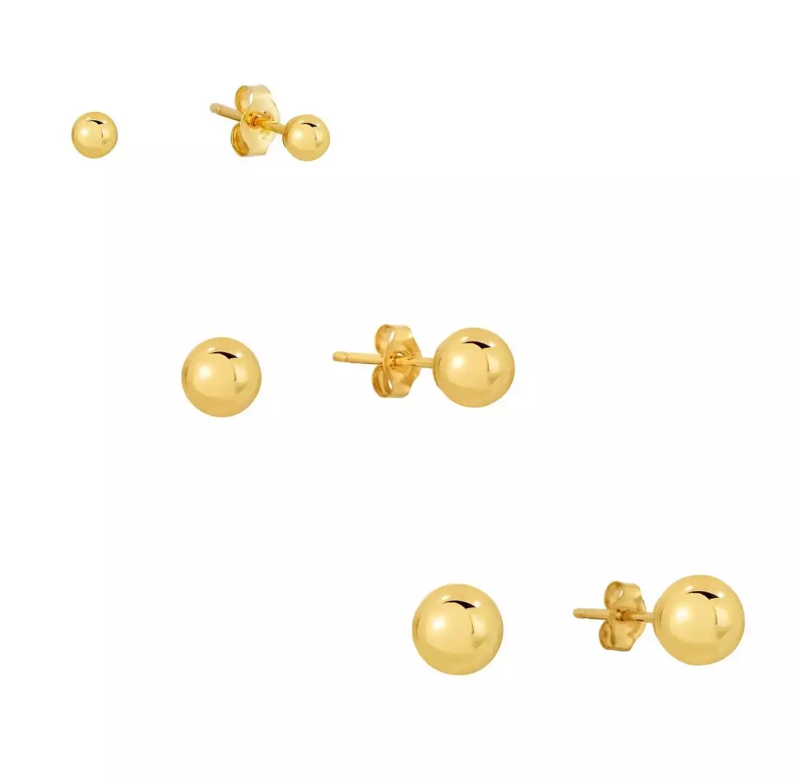 Klassiset pallokorvakorut 14k keltakultaa, saatavilla eri kokoja.