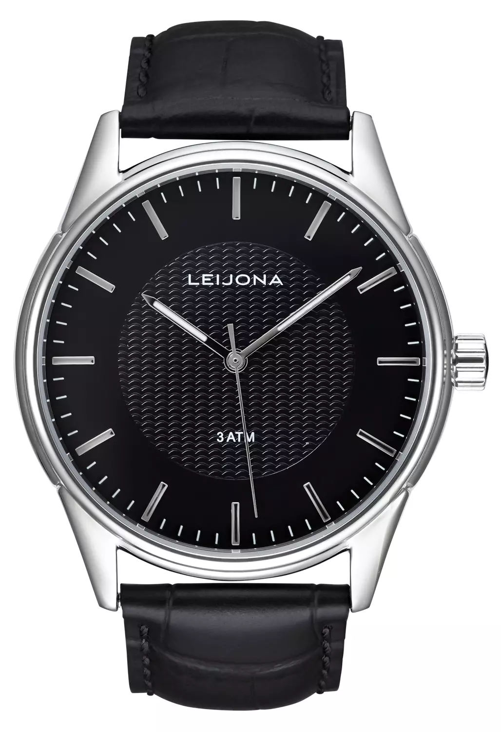 Klassinen miesten rannekello mustalla kellotaululla ja nahkarannekkeella.