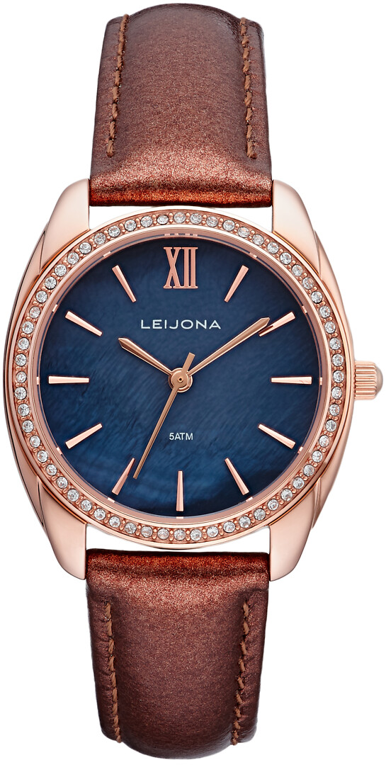 LEIJONA Hoods Ogeli naisten tyylikäs rannekello tyylikkäällä metallinhohtoisella nahkarannekkeella ja siniharmaalla helmiäistaululla ja koristekivillä