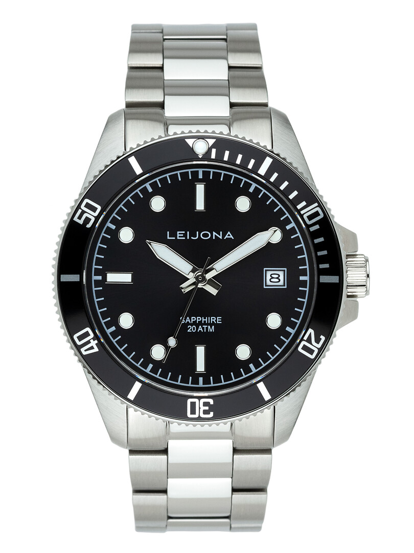 LEIJONA JÄRWI Wetsuit Black miestenrannekello mustalla kellotaululla 5012-2551. Kellon koneistolla 2vuoden takuu.