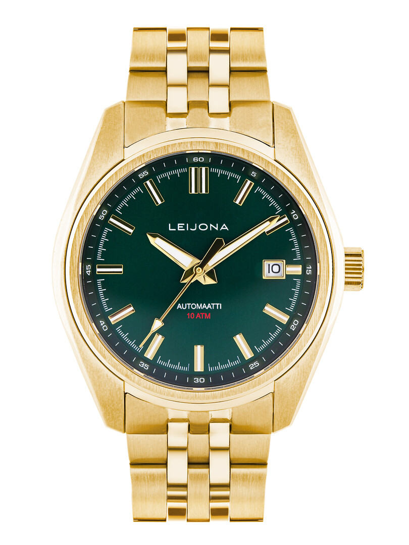 Leijona Kataja Special edition - upea kullanvärinen automaattikello tummanvihreällä kellotaululla!