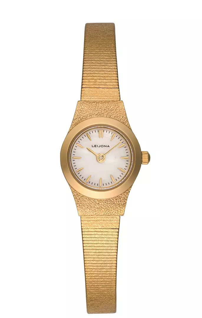 Vanha tuttu malli tekee odotetun paluun! Ihanan siro, eleganttinen naisten korukello Leijonan Kuiske mallistosta sopii niin arkeen kuin juhlaan. Tässä mallissa kaunis kullanhohde on yhdistetty valkeaan helmiäistauluun.