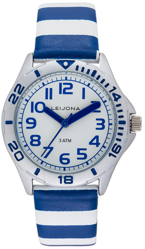 LEIJONA RANNEKELLO 5223-812 sini-valko raidallinen ranneke, teräs kuoret