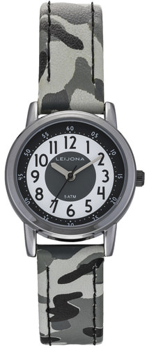 Leijona 5223-858 rannekello kuvioidulla harmaalla rannekkeella.