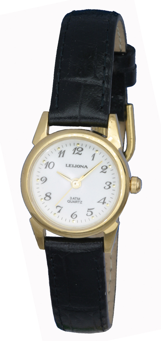 Leijonan sievä naisten peruskello mustalla nahkarannekkeella.