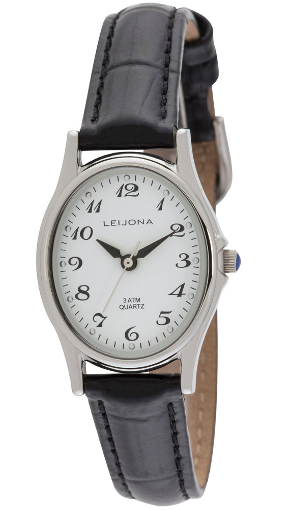 Leijona ovaalin mallinen naisten peruskello mustalla nahkarannekkeella.
