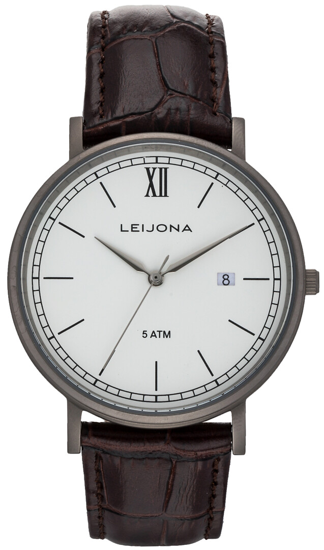Leijona Rokua miesten titaanikuorinen rannekello ruskealla nahkarannekkeellaa.